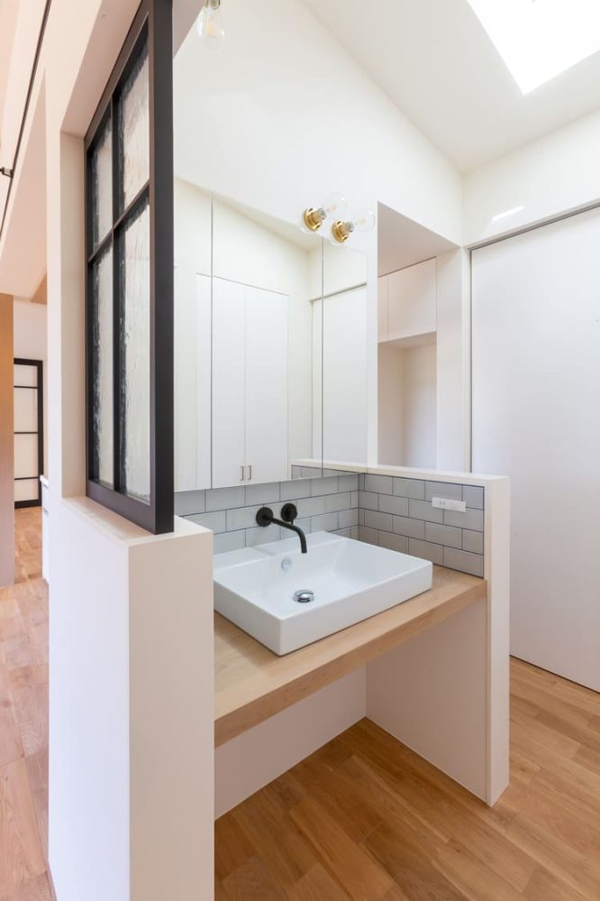 ふと、その空間に足を踏み入れた瞬間、あなたの目に、そして心に留まるのは、まるで、著名なインテリアデザイナーが手掛けた、特別な作品のようにお洒落で、そして美しい洗面スペース。